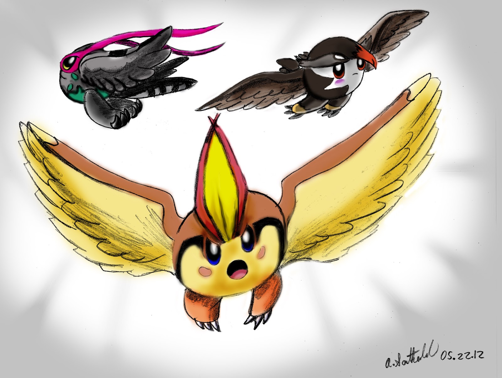 As you can see, some of the designs were altered a bit (Hint: all the animals have 4 fingers now). And thanks to many experiments, I've gotten better at coloring and picture composition. These are two of the pictures I showed off as penciled sketches two posts ago. Both of them took me three to four days to complete, so at least I'm able to work faster now!